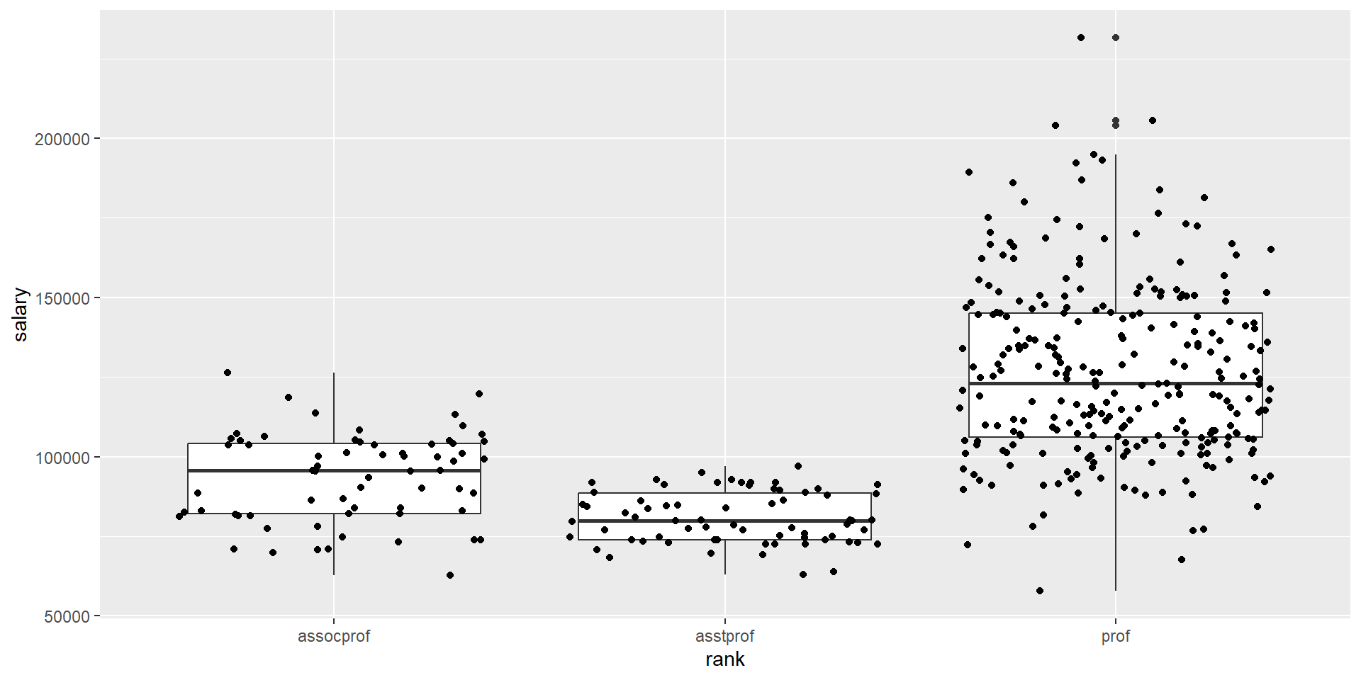 salary across faculty rankyrs.service and salary. Don’t forget to label the graph!Q1 to Q5). Group the results by rank.Tip